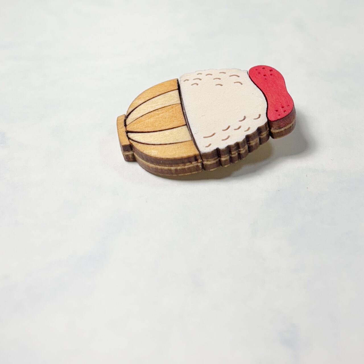 「明太子と大盛りごはん」木製ブローチ かわいい ユニーク プレゼント 和モダン