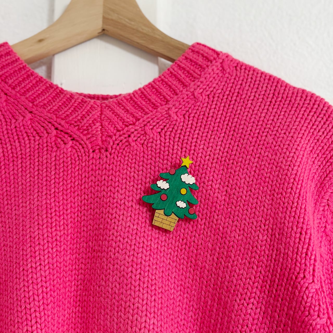 木製ブローチ『クリスマスツリー』 |冬コーデを彩る北欧風アクセサリー|ほっこり笑顔のクリスマス雑貨