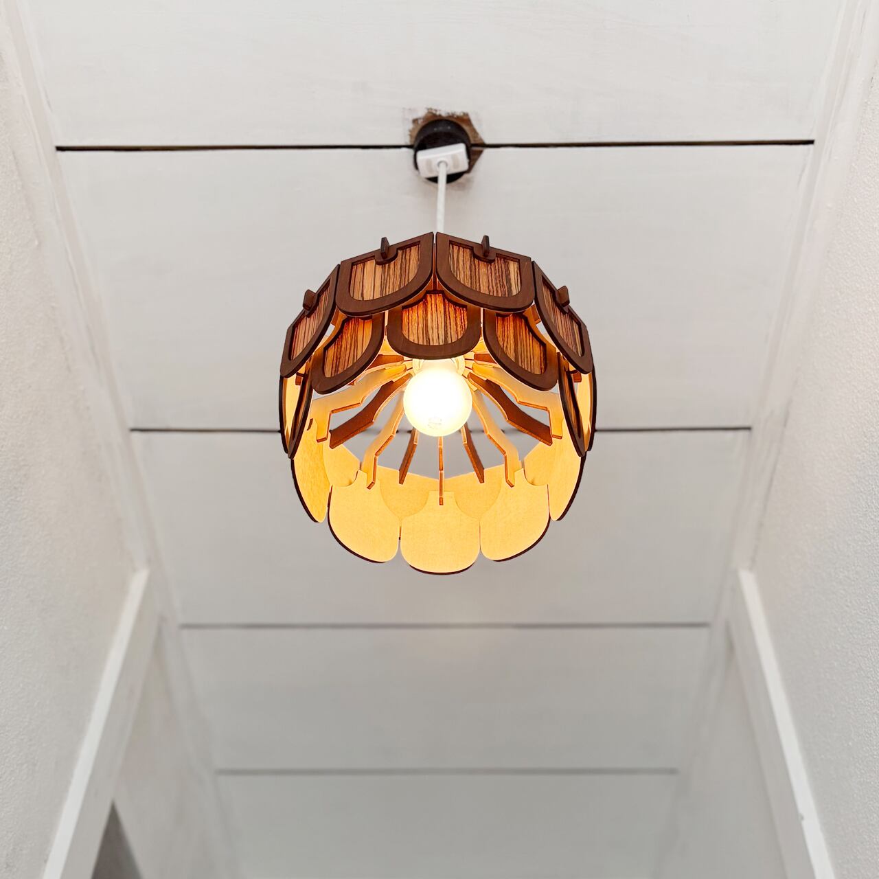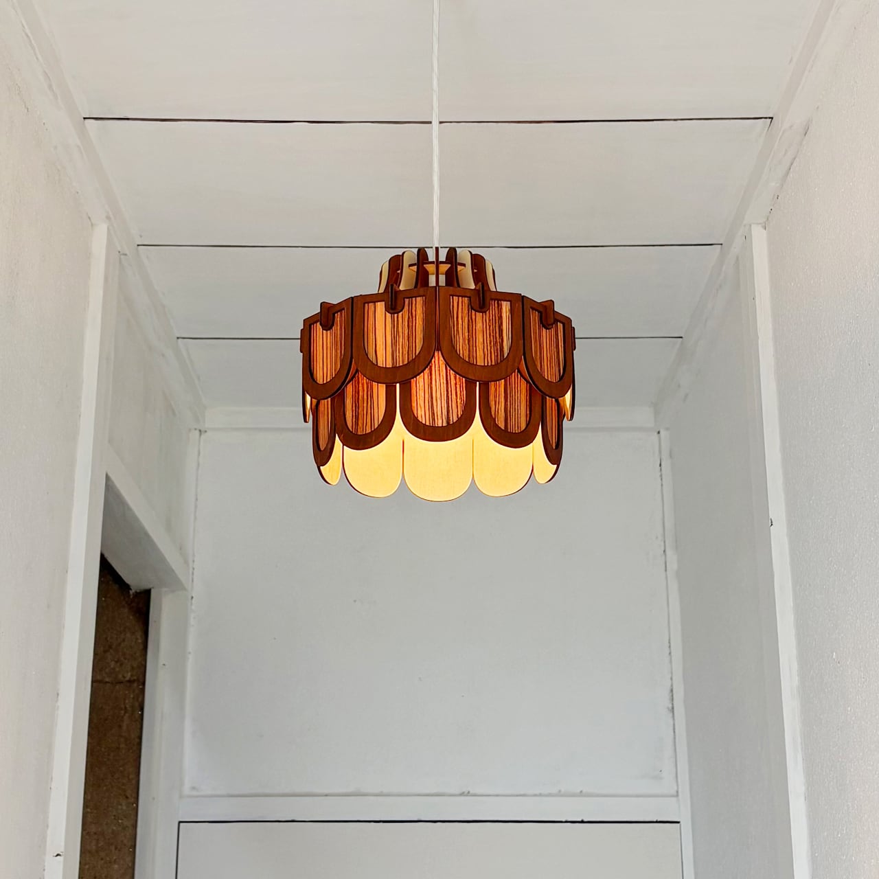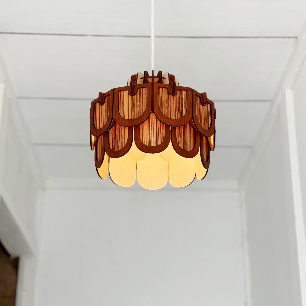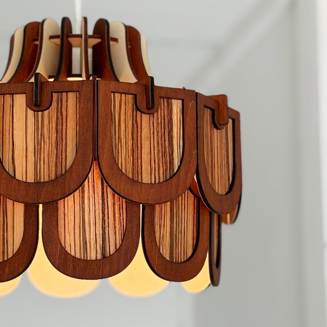 木製ペンダントライト『アーチ(ゼブラウッド)』 |ナチュラル照明|ゼブラウッド突板の木目が美しい|北欧モダン空間に|上質で心地よい灯り
