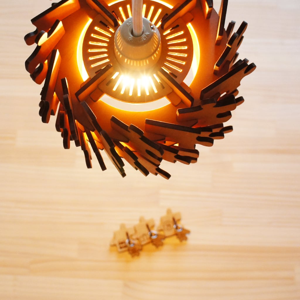 玄関やダイニングにかわいく、癒しの照明はどうでしょうか?ピースとピースの間からもれる優しい光が、ご家族やお客様との楽しい会話のお手伝いをさせていただきます。ぬくもりを感じさせる灯りが子供部屋を優しく照らし、お子様へ笑顔をお届けします!北欧インテリアと相性の良い木製ならではの優しいデザインと素材感で癒しのインテリアとして活躍してくれると思います。