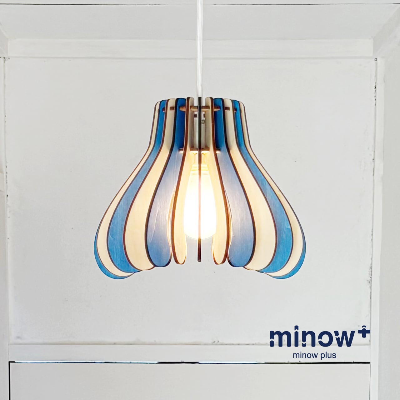 凛としたマリンブルーと、木のやさしさが出会うペンダントライト「マッシュ(マリン)」。