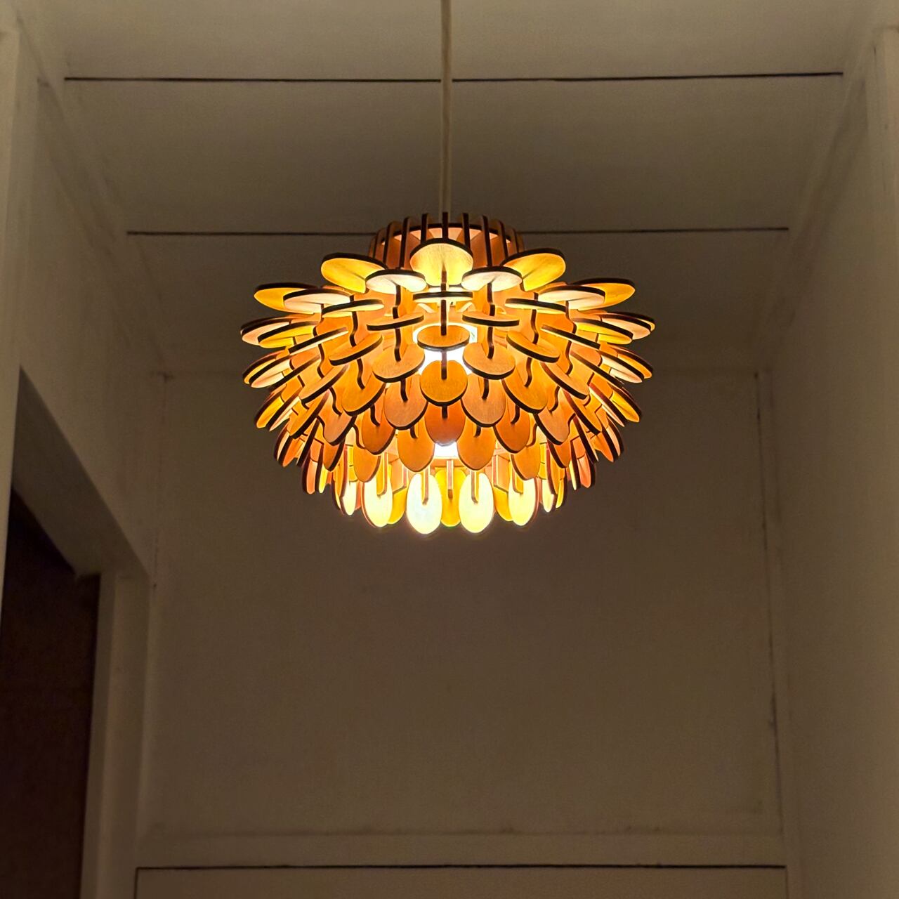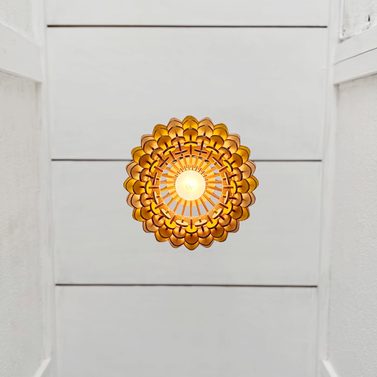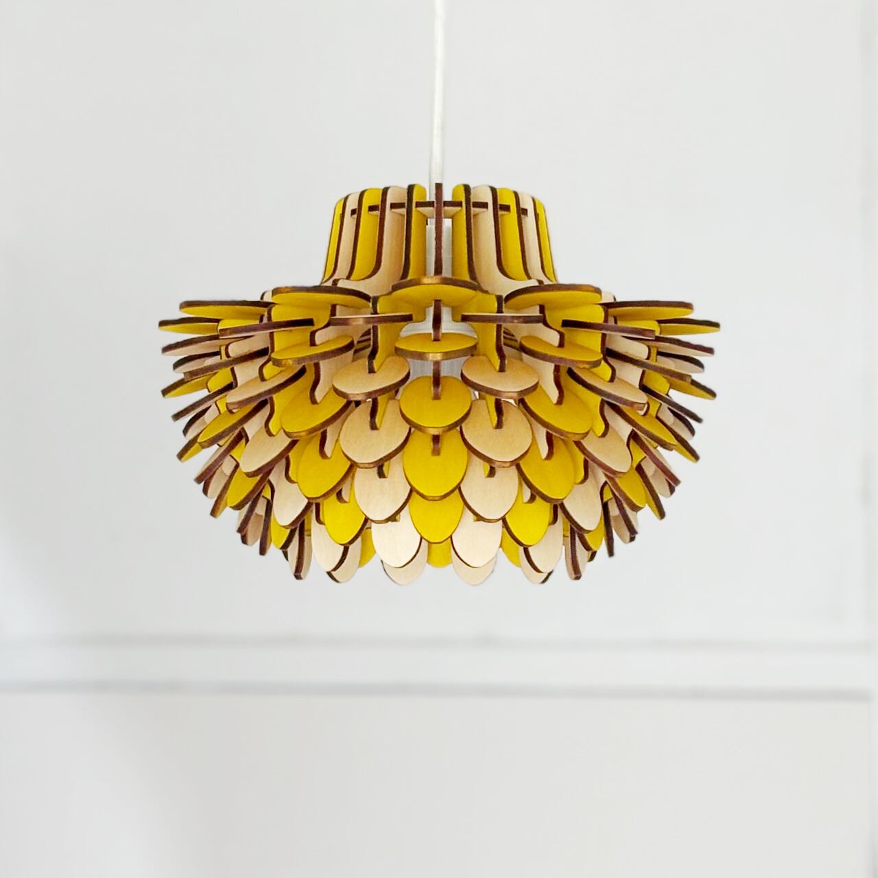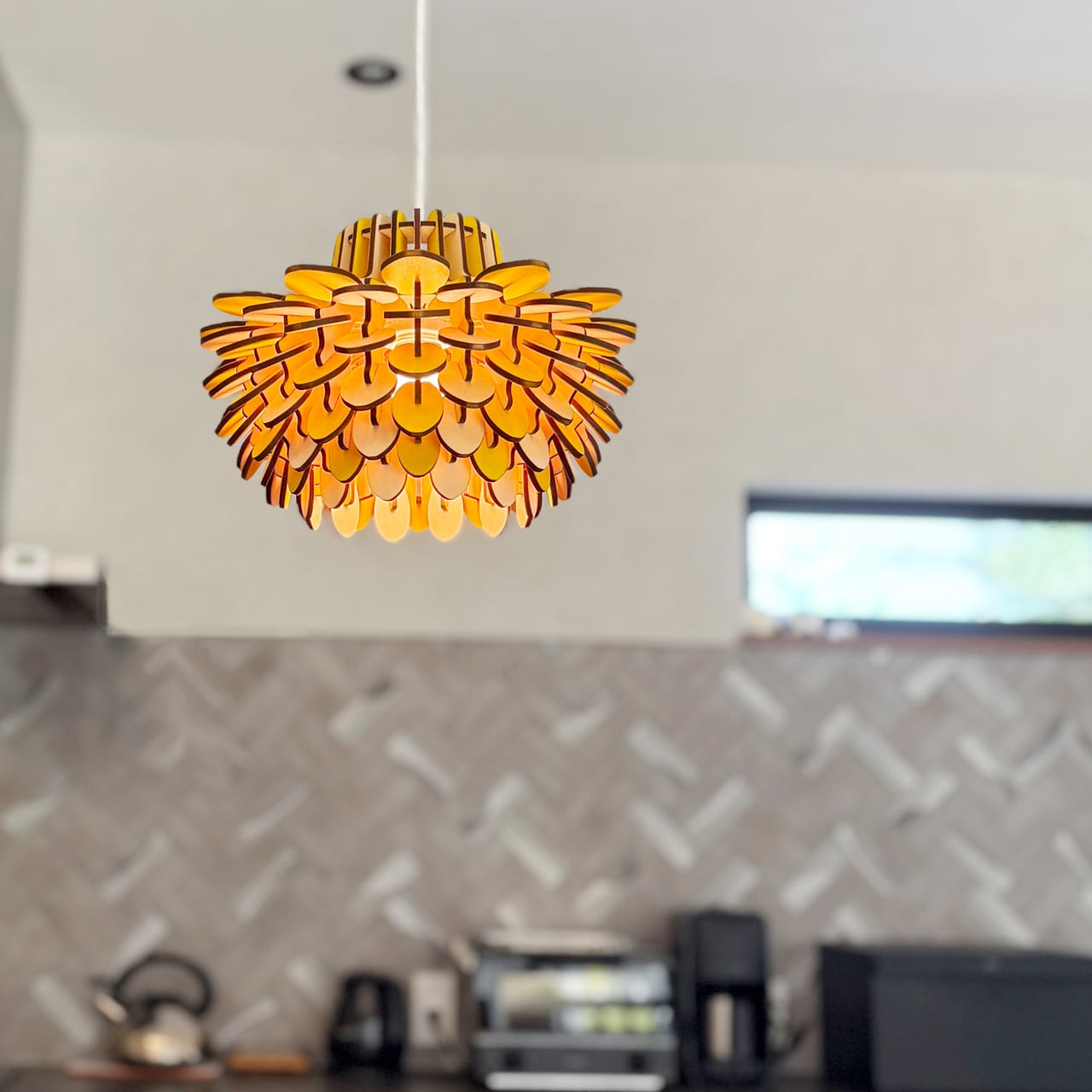 木製ペンダントライト 『ダリア(ミモザイエロー)』 |北欧ナチュラル照明|花びらデザイン|華やかで存在感ある灯り|おしゃれな木の天井照明