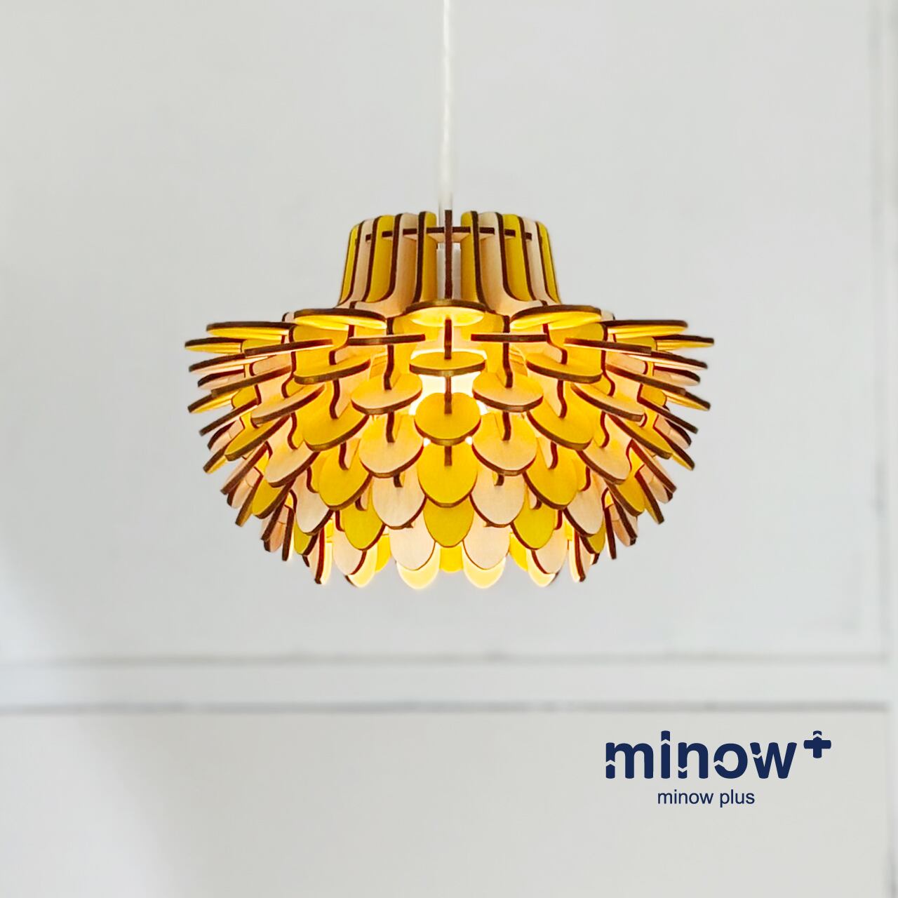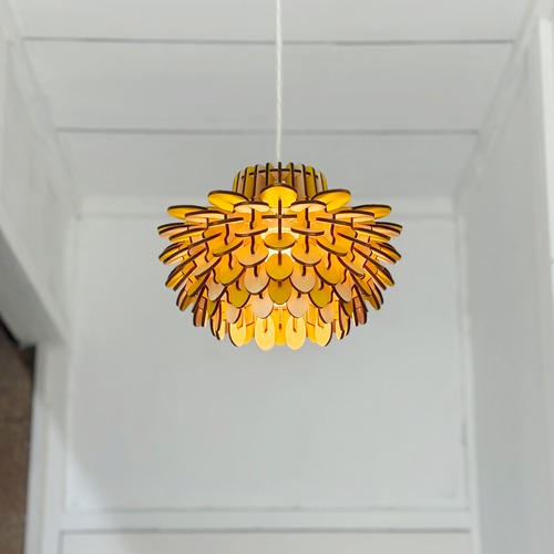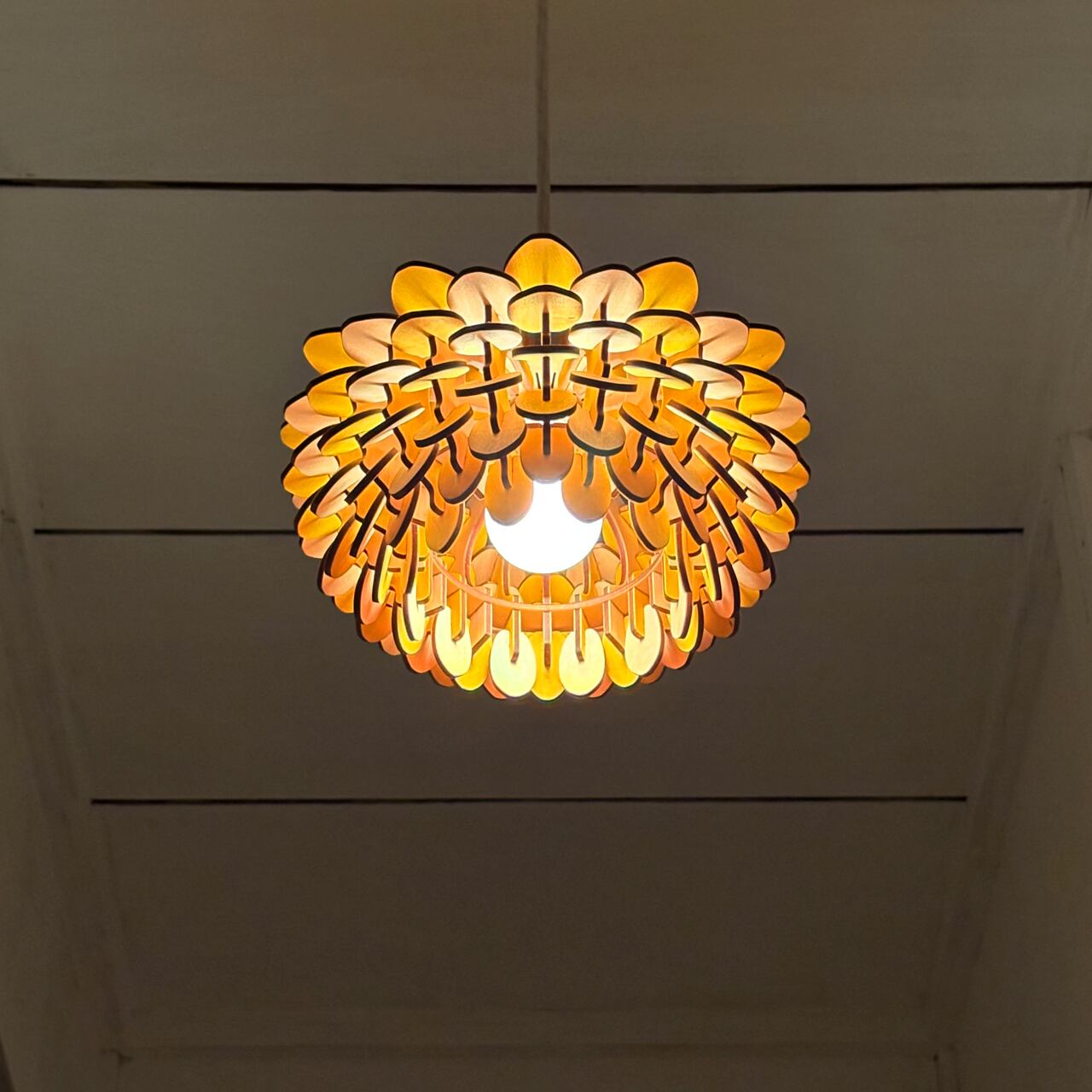 「ダリア(ミモザイエロー)」は、大輪の花のような華やかさと木のぬくもりを併せ持つ一灯。