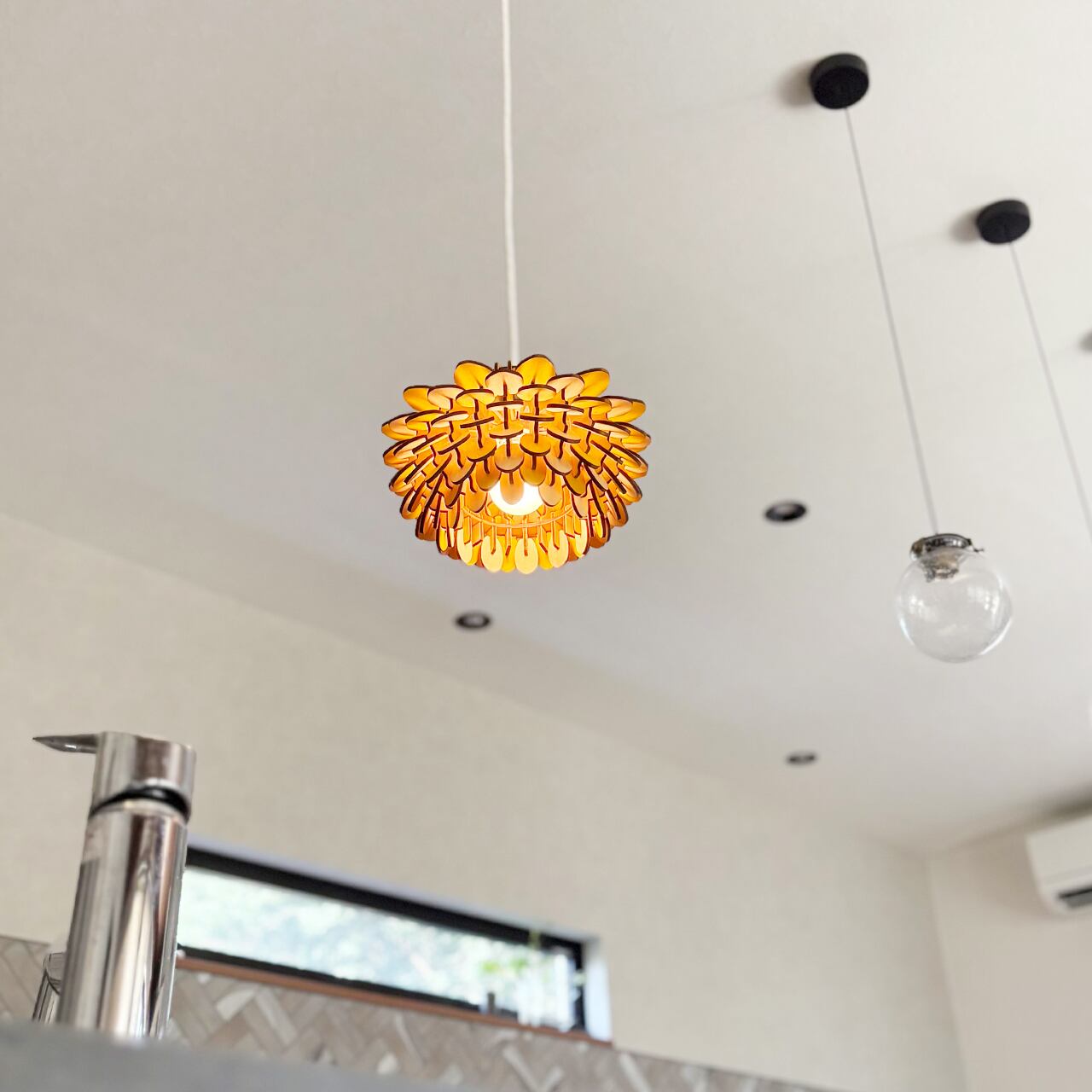 【大輪の花が咲くように、華やかに灯るペンダントライト】