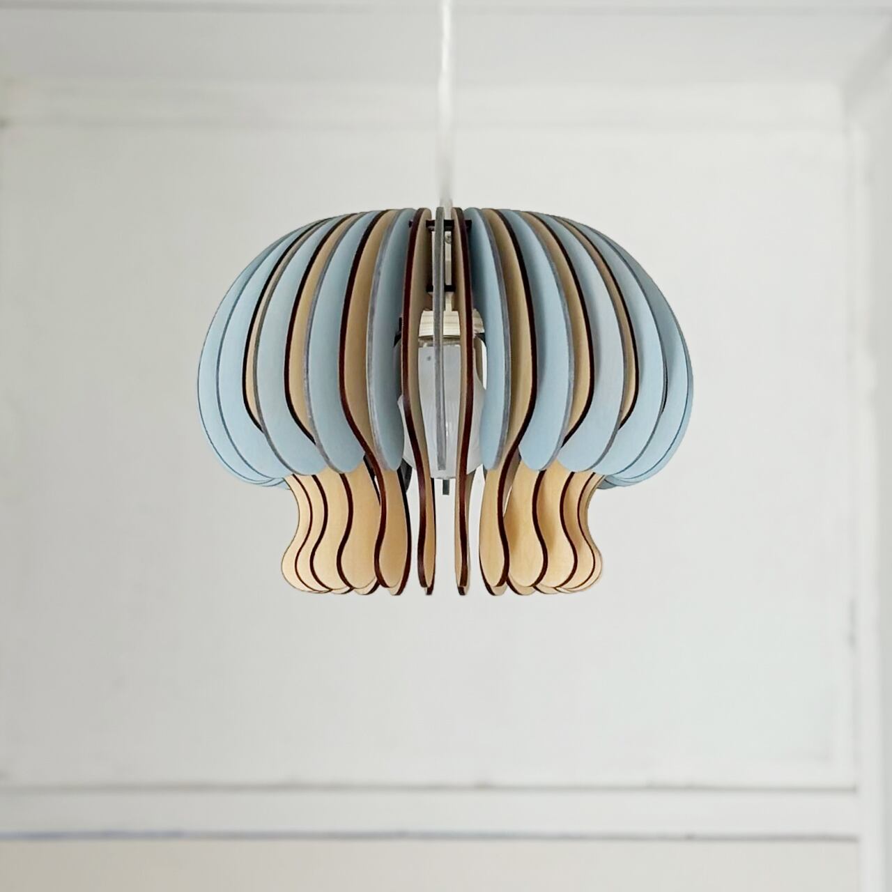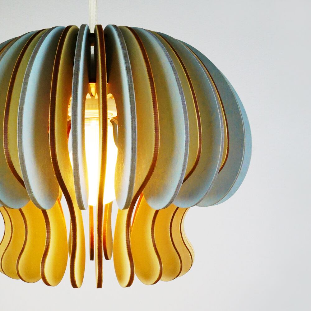 木製ペンダントライト『ジェリーフィッシュ(アクア)』 |アクアブルーが漂う北欧照明|静けさと癒しを灯すやさしい灯り