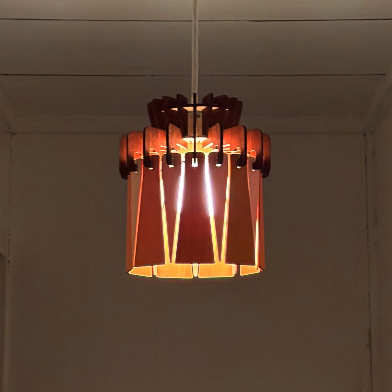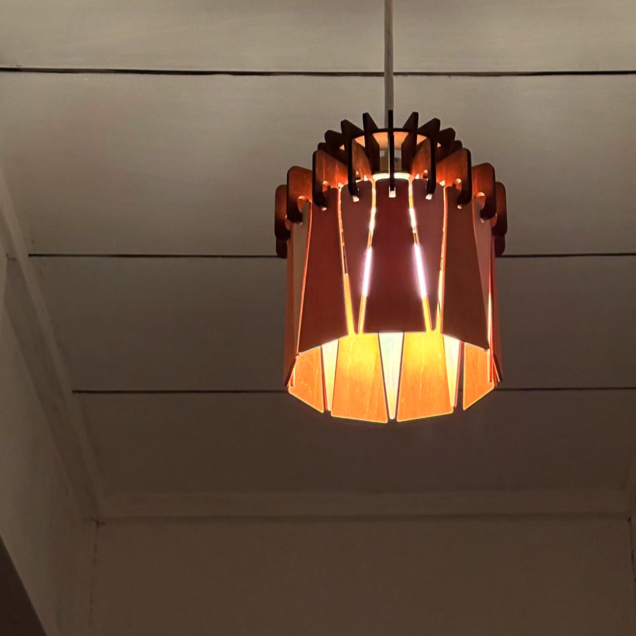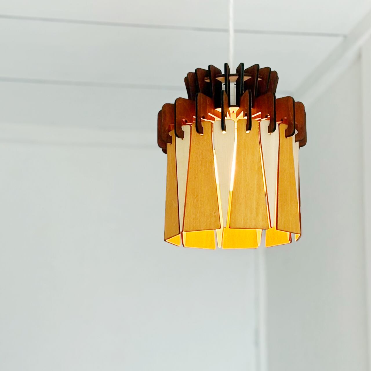 北欧の積み木をイメージした木製パネルペンダントライト「つみき」です。ブラウン系の配色が温かでかわいく、パネルとパネルの間からふわっと漏れる優しい明かりがとても心地よいペンダントライトです。