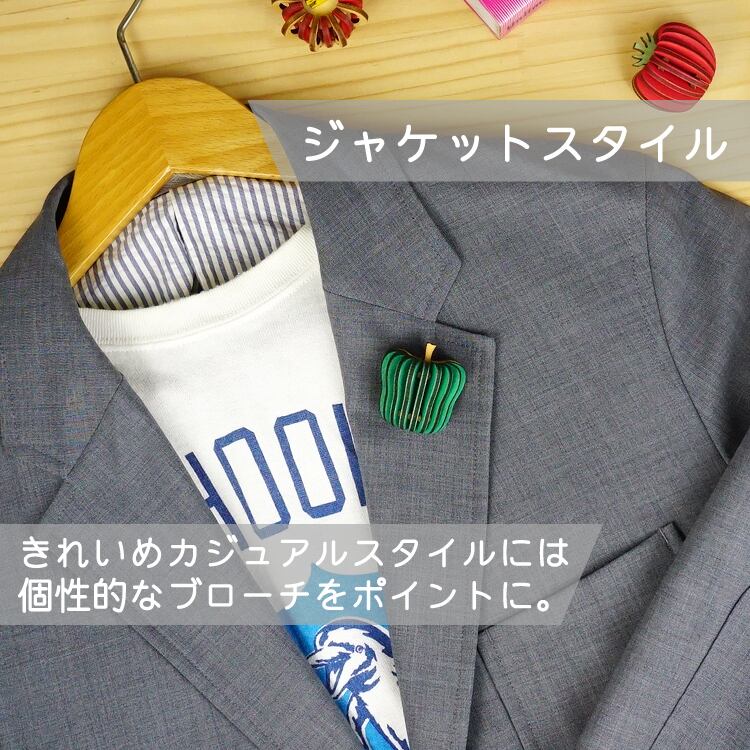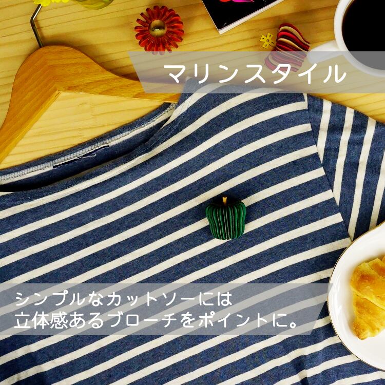 「ピーマン」木製ブローチ かわいい アクセサリー ギフト 北欧