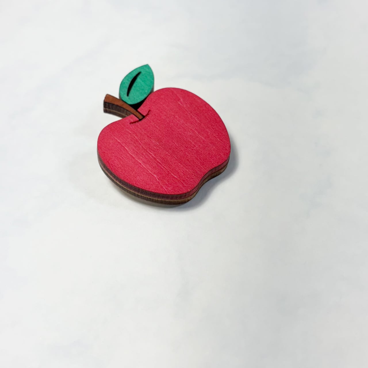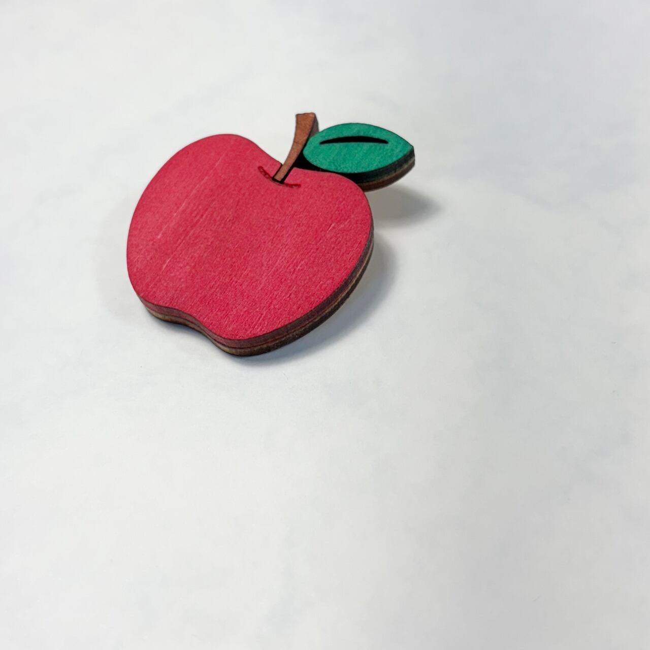 「りんご」をモチーフにしたぬくもりを感じさせるかわいい木製ブローチです。