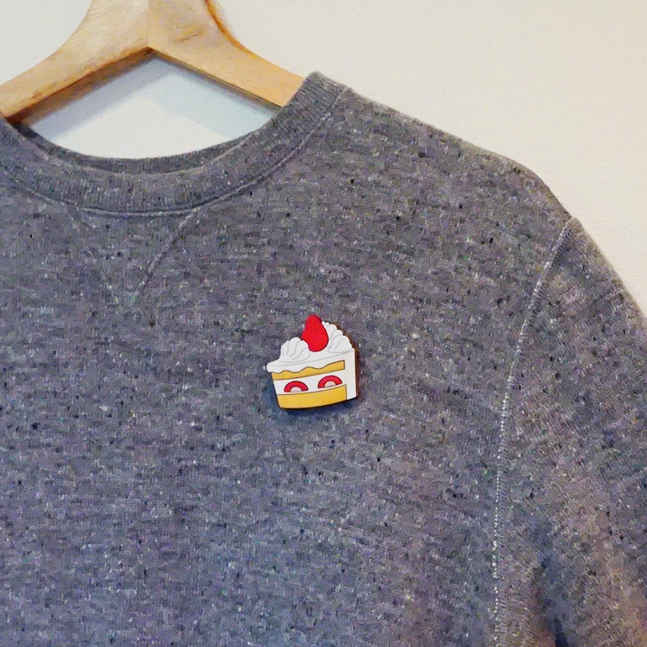 「ショートケーキ」木製ブローチ かわいい クリスマス ギフト スイーツ 北欧