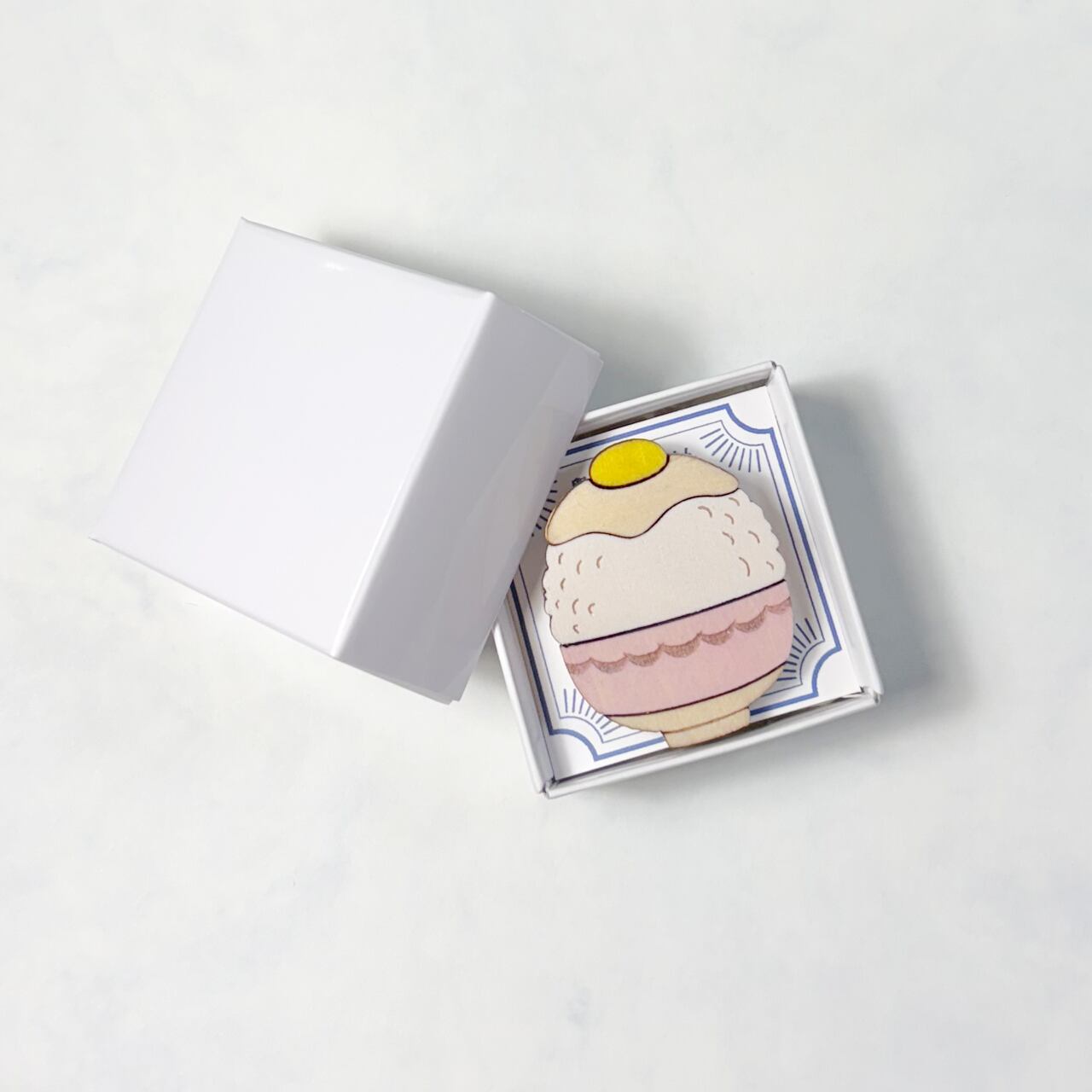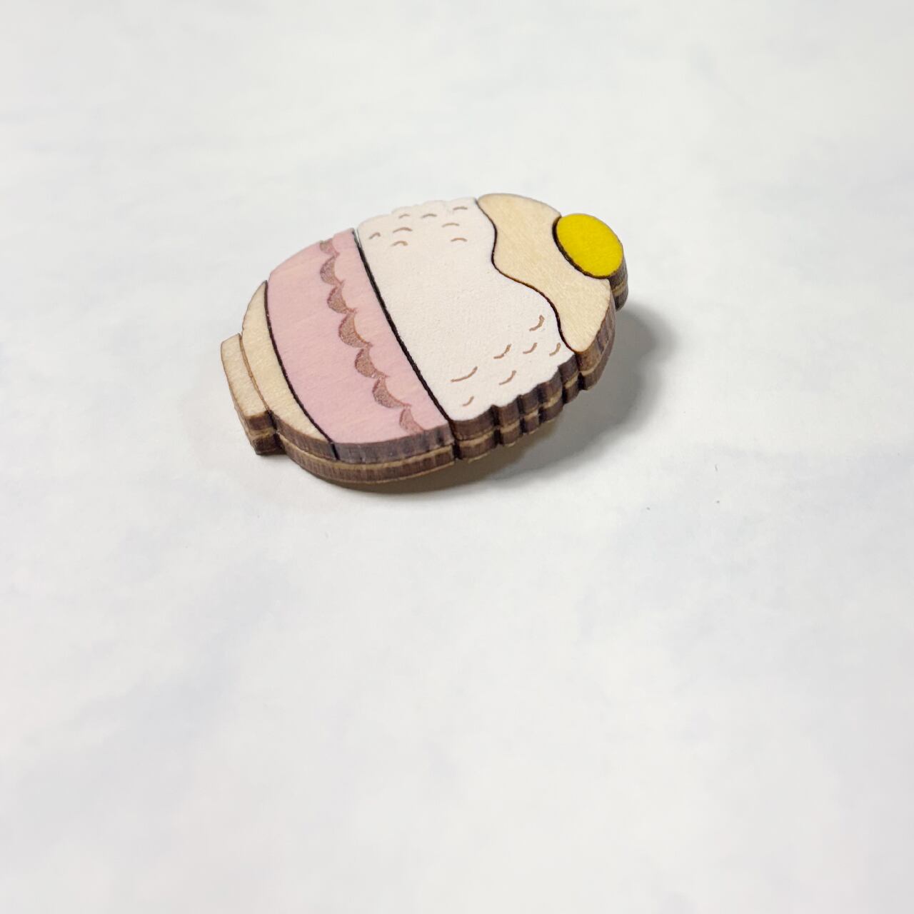 商品名 / 品番 木製ブローチ「卵と大盛りごはん」 / MPA-2513(MY)